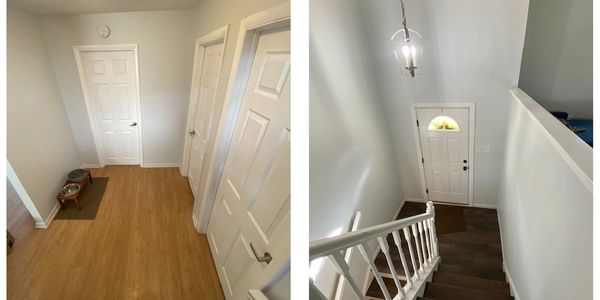 Installed new flooring in kitchen, dining room, hallway, closets and entranceway.